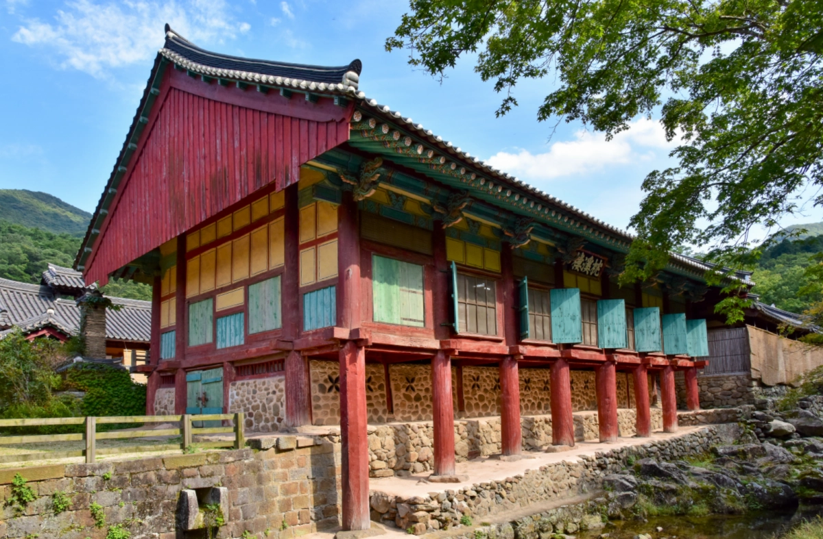 대웅전 등 주불전 전면에 설치되는 일반 사찰누각과 달리 승려들의 강학(講學)을 위한 공간으로, 주위의 수려한 자연경관과 조화를 이루고 있어 학술적·예술적 가치가 크다.